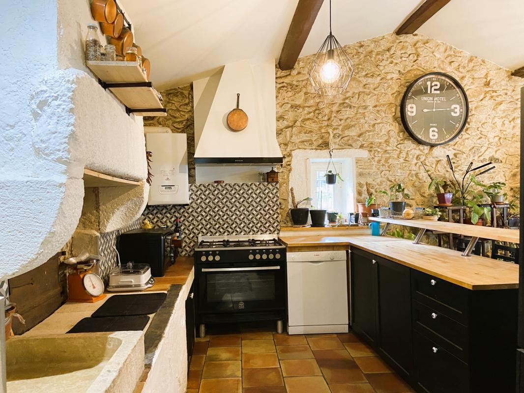 Cette maison se compose d'un sejour de 35m² avec sa cheminé dersservant la salle à manger avec une cuisine atypique ouverte de 27m² . Ainsi qu'une buanderie de 9m² et WC indépendant.