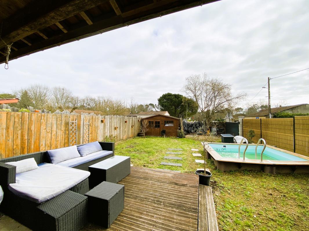 A l'exterieur, jardin avec une terasse et sa cuisine d'été ainsi que sa piscine 4x4. Et un cabanon de 19m².
