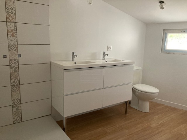 A l'étage, sont deservies 3 chambres de 9, 11 et 12m² et une salle d'eau avec un seche serviette..